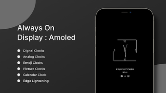 Le funzionalità includono orologi digitali personalizzabili, orologi analogici eleganti, emoji divertenti e la possibilità di impostare sfondi con immagini. Inoltre, l'app consente di visualizzare un calendario e di personalizzare l'aspetto con effetti di luce sui bordi dello schermo. Questa applicazione è ideale per chi desidera avere sempre a portata di mano le informazioni essenziali senza dover interagire fisicamente con il dispositivo.